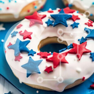Intra Συλλεκτικό Ξύλινο Παζλ Plywood 4mm - Παγωμένο ντόνατς με κόκκινα, λευκά και μπλε αστέρια σε μπλε τραπεζομάντιλο Σε Ξύλινο Κουτί - Διαστάσεις: 10x10 cm – 25 κομμάτια