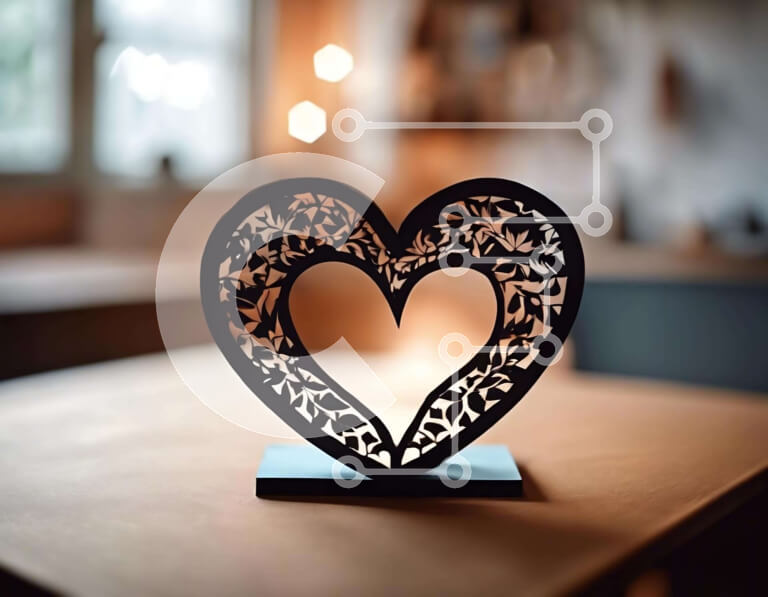 Intra Συλλεκτικό Ξύλινο Παζλ Plywood 4mm - Μεταλλικό γλυπτό σε σχήμα καρδιάς στο τραπέζι της κουζίνας Σε Ξύλινο Κουτί - Διαστάσεις Puzzle: 10x10 cm – 25 κομμάτια