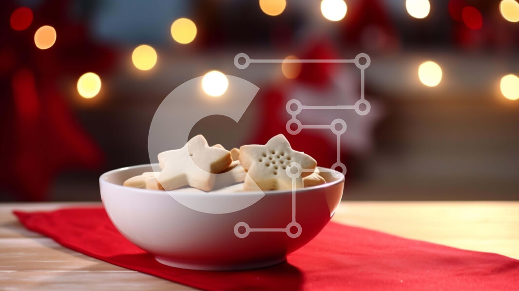 Intra Συλλεκτικό Ξύλινο Παζλ Plywood 4mm - Μπισκότα σε σχήμα αστεριού σε λευκό μπολ σε εορταστική κόκκινη χαρτοπετσέτα Σε Ξύλινο Κουτί - Διαστάσεις: 10x10 cm – 25 κομμάτια