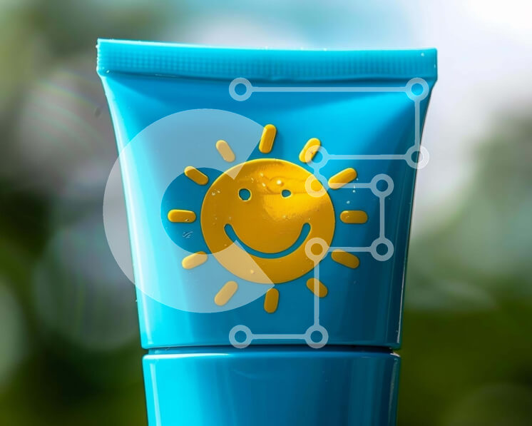 Intra Συλλεκτικό Ξύλινο Παζλ Plywood 4mm - Μπλε αντηλιακό σωληνάριο με χαμογελαστό πρόσωπο και σύμβολο ήλιου Σε Ξύλινο Κουτί - Διαστάσεις: 10x10 cm – 25 κομμάτια