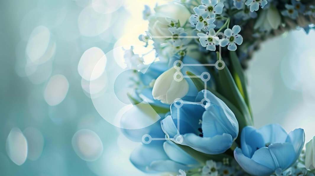 Intra Συλλεκτικό Ξύλινο Παζλ Plywood 4mm - Μπλε και άσπρο στεφάνι λουλουδιών Σε Ξύλινο Κουτί - Διαστάσεις Puzzle: 10x10 cm – 25 κομμάτια