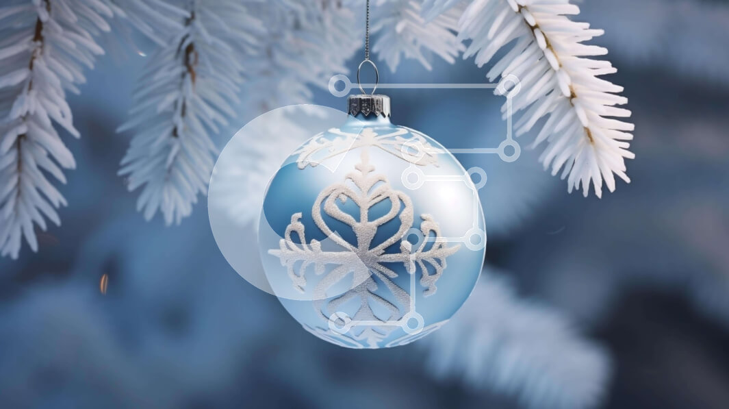 Intra Συλλεκτικό Ξύλινο Παζλ Plywood 4mm - Μπλε και άσπρο στολίδι που κρέμεται σε ένα χιονισμένο αειθαλές δέντρο Σε Ξύλινο Κουτί - Διαστάσεις: 10x10 cm – 25 κομμάτια