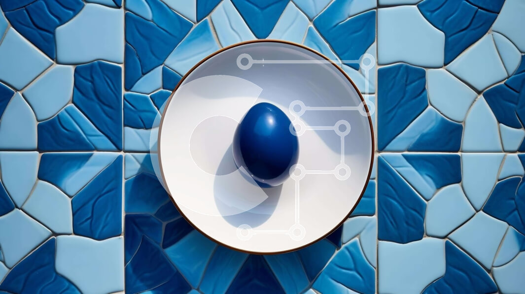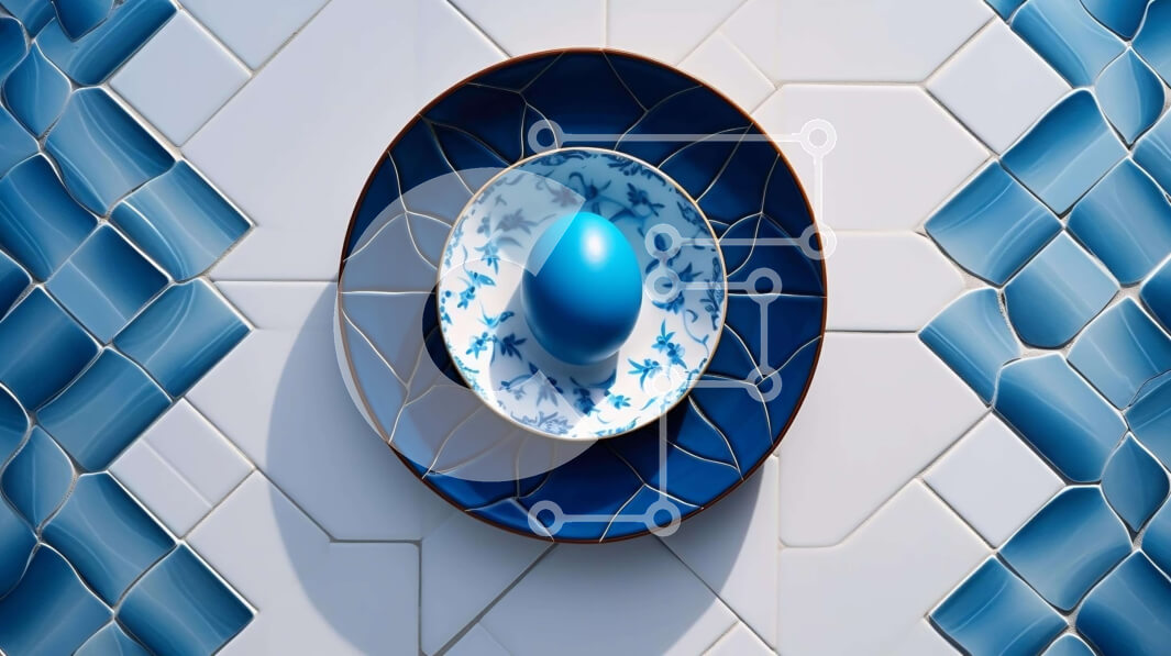Intra Συλλεκτικό Ξύλινο Παζλ Plywood 4mm - Μπλε και άσπρο πιάτο με αυγό σε τοίχο με πλακάκια Σε Ξύλινο Κουτί - Διαστάσεις: 10x10 cm – 25 κομμάτια