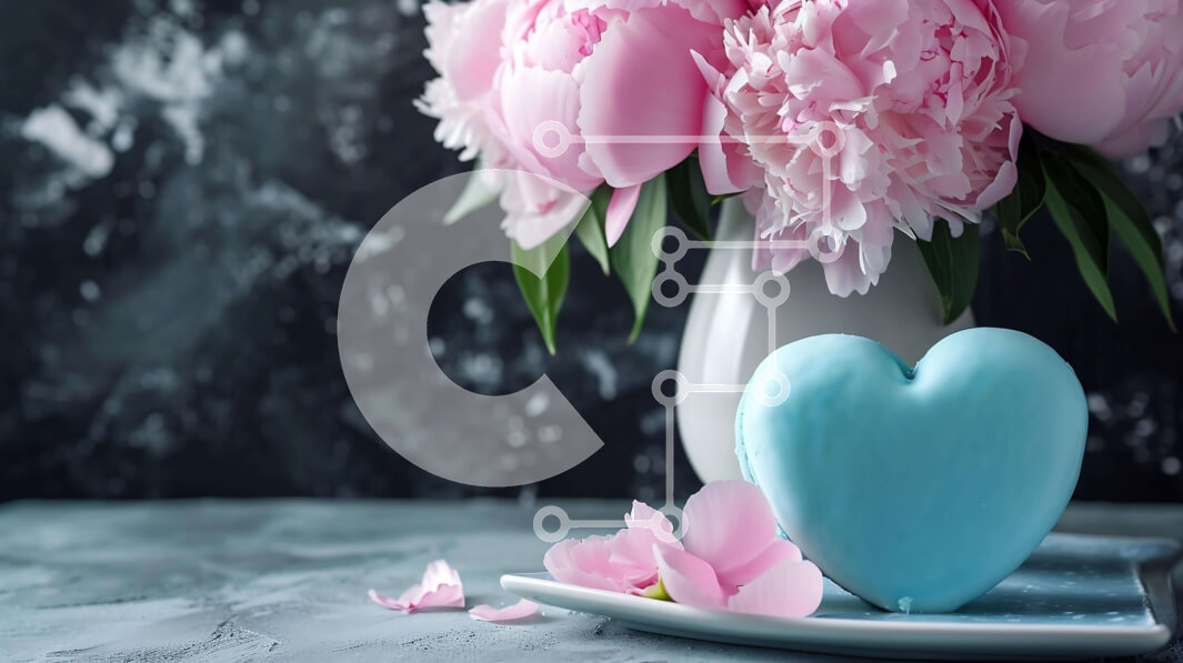 Intra Συλλεκτικό Ξύλινο Παζλ Plywood 4mm - Μπλε κέικ σε σχήμα καρδιάς με παιώνιες και τριαντάφυλλα Σε Ξύλινο Κουτί - Διαστάσεις: 10x10 cm – 25 κομμάτια