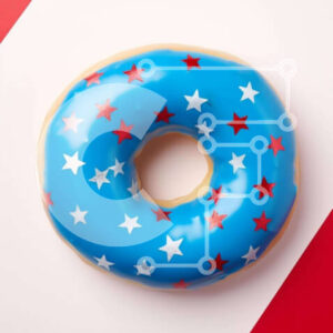 Intra Συλλεκτικό Ξύλινο Παζλ Plywood 4mm - Μπλε ντόνατ με κόκκινα, λευκά και μπλε αστέρια Σε Ξύλινο Κουτί - Διαστάσεις: 10x10 cm – 25 κομμάτια