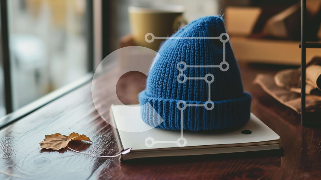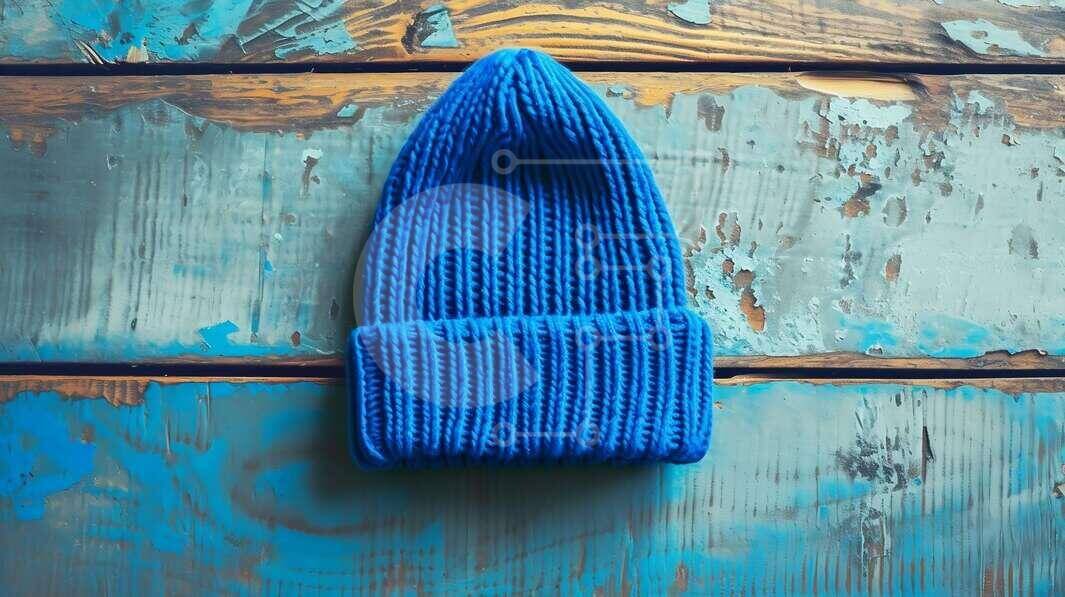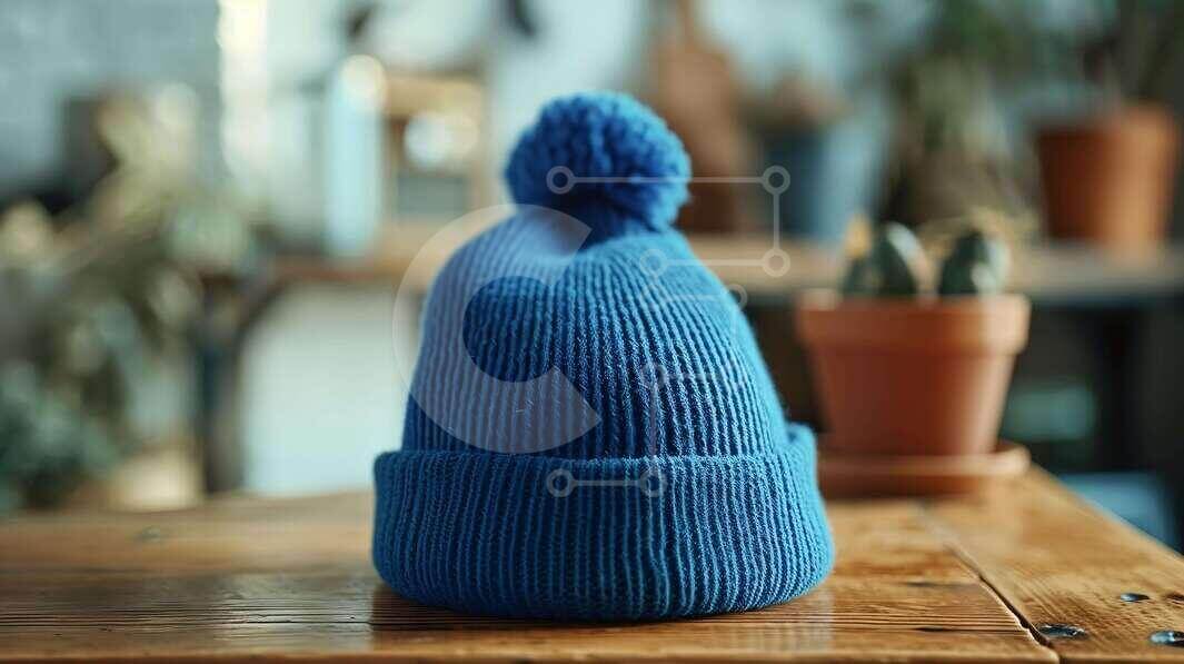 Intra Συλλεκτικό Ξύλινο Παζλ Plywood 4mm - Μπλε πλεκτό καπέλο σε ξύλινο τραπέζι Σε Ξύλινο Κουτί - Διαστάσεις Puzzle: 10x10 cm – 25 κομμάτια