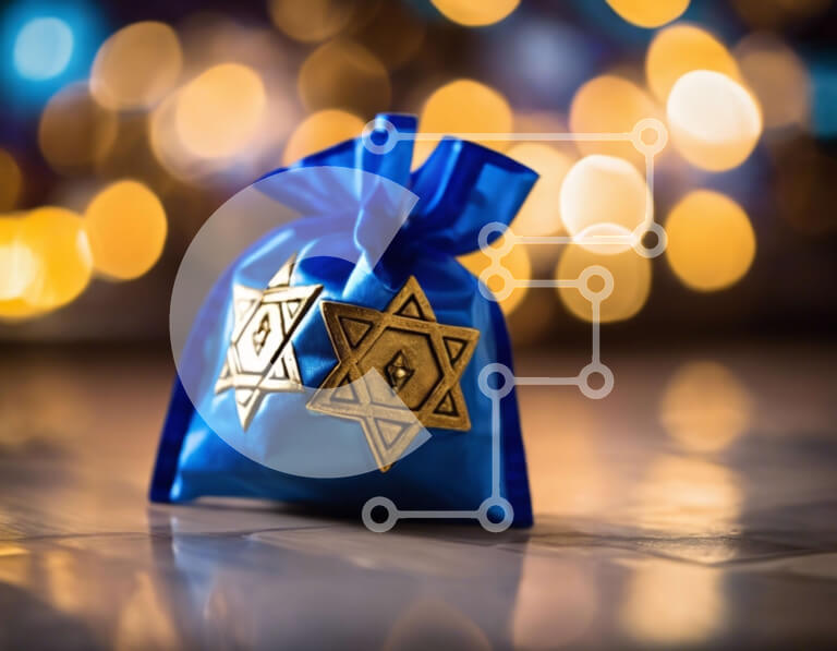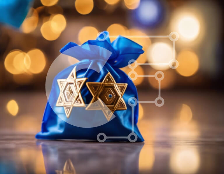 Intra Συλλεκτικό Ξύλινο Παζλ Plywood 4mm - Μπλε τσάντα δώρου με χρυσά αστέρια για το Hanukkah Σε Ξύλινο Κουτί - Διαστάσεις: 10x10 cm – 25 κομμάτια