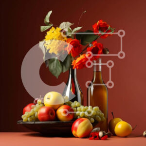 Intra Συλλεκτικό Ξύλινο Παζλ Plywood 4mm - Μπολ με φρέσκα φρούτα και μπουκάλια κρασιού με λουλούδια Σε Ξύλινο Κουτί - Διαστάσεις: 10x10 cm – 25 κομμάτια