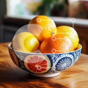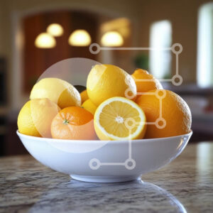 Intra Συλλεκτικό Ξύλινο Παζλ Plywood 4mm - Μπολ με φρέσκα λεμόνια και πορτοκάλια στον πάγκο από γρανίτη Σε Ξύλινο Κουτί - Διαστάσεις: 10x10 cm – 25 κομμάτια