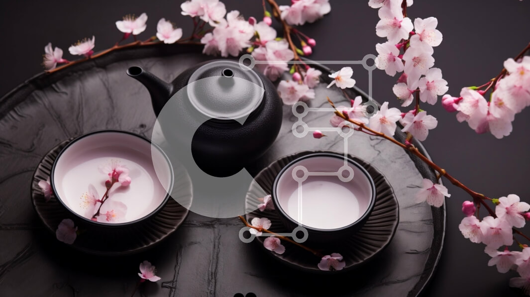 Intra Συλλεκτικό Ξύλινο Παζλ Plywood 4mm - Μαύρη τσαγιέρα και φλιτζάνια ροζ άνθη Σε Ξύλινο Κουτί - Διαστάσεις Puzzle: 10x10 cm – 25 κομμάτια