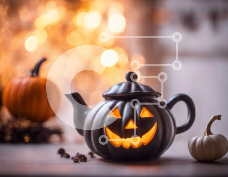 Intra Συλλεκτικό Ξύλινο Παζλ Plywood 4mm - Μαύρη τσαγιέρα με θέμα το Halloween με σκαλίσματα κολοκύθας Σε Ξύλινο Κουτί - Διαστάσεις: 10x10 cm – 25 κομμάτια