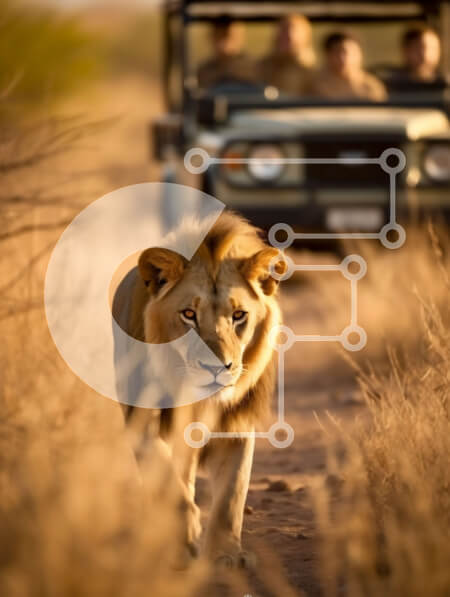 Intra Συλλεκτικό Ξύλινο Παζλ Plywood 4mm - Όμορφη εικόνα του λιονταριού που περπατά στην άγρια φύση σε έναν χωματόδρομο Σε Ξύλινο Κουτί - Διαστάσεις: 10x10 cm – 25 κομμάτια