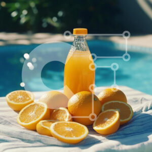 Intra Συλλεκτικό Ξύλινο Παζλ Plywood 4mm - Μπουκάλι χυμό πορτοκάλι με φρέσκα πορτοκάλια δίπλα στην πισίνα Σε Ξύλινο Κουτί - Διαστάσεις: 10x10 cm – 25 κομμάτια