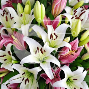 Intra Συλλεκτικό Ξύλινο Παζλ Plywood 4mm - Μπουκέτο με λευκά, ροζ και μωβ κρίνα με τριαντάφυλλα, γαρίφαλα και ορχιδέες Σε Ξύλινο Κουτί - Διαστάσεις: 10x10 cm – 25 κομμάτια