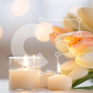 Intra Συλλεκτικό Ξύλινο Παζλ Plywood 4mm - Μπουκέτο με λευκές, πορτοκαλί και κίτρινες τουλίπες με κεριά Σε Ξύλινο Κουτί - Διαστάσεις: 10x10 cm – 25 κομμάτια