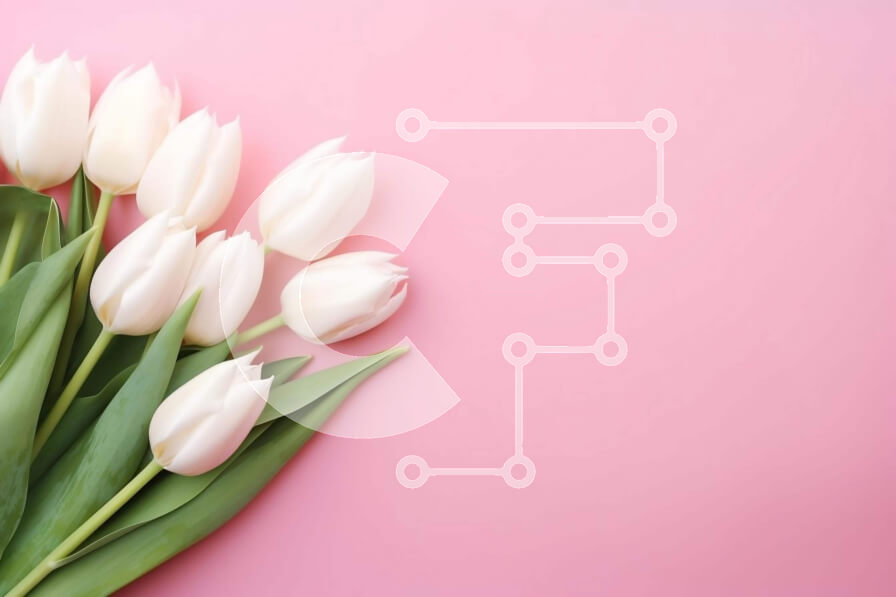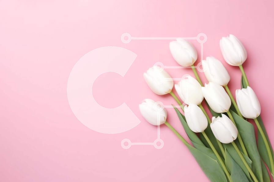 Intra Συλλεκτικό Ξύλινο Παζλ Plywood 4mm - Μπουκέτο με λευκές τουλίπες σε ροζ φόντο με πράσινα φύλλα Σε Ξύλινο Κουτί - Διαστάσεις: 10x10 cm – 25 κομμάτια