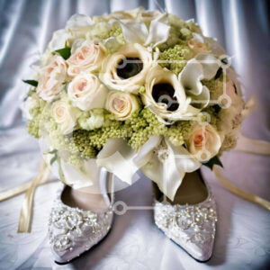 Intra Συλλεκτικό Ξύλινο Παζλ Plywood 4mm - Μπουκέτο με λευκό και ροζ τριαντάφυλλο σε ασημένια νυφικά παπούτσια Σε Ξύλινο Κουτί - Διαστάσεις: 10x10 cm – 25 κομμάτια
