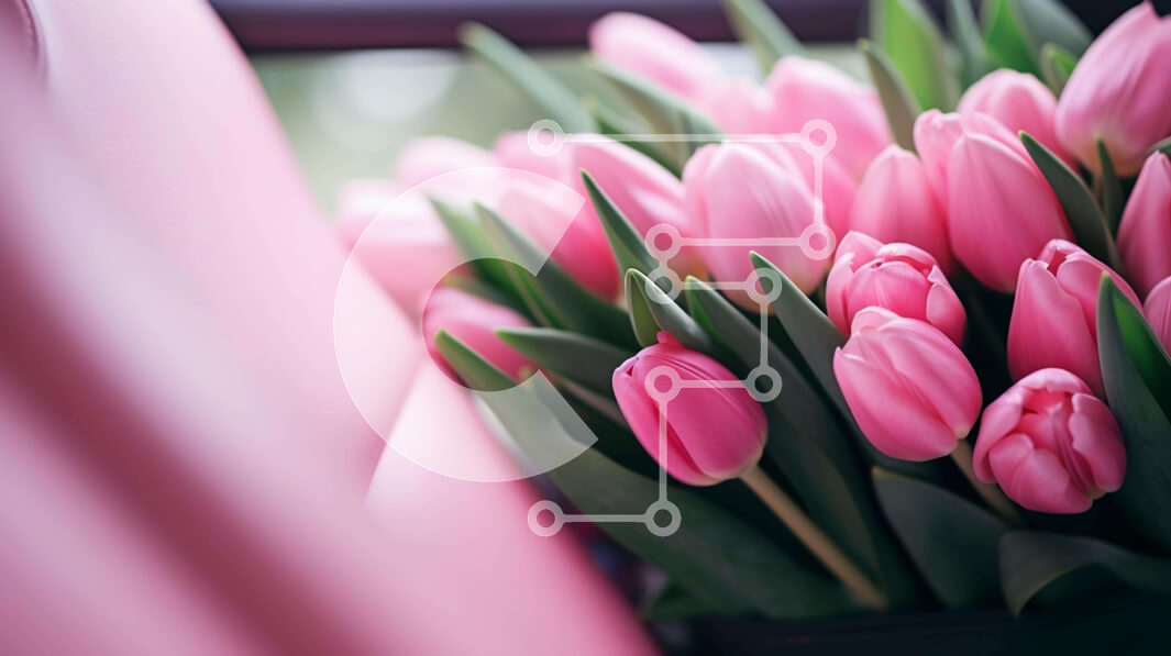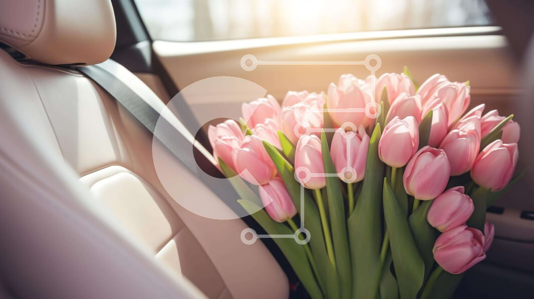 Intra Συλλεκτικό Ξύλινο Παζλ Plywood 4mm - Μπουκέτο με ροζ τουλίπες στο αυτοκίνητο Σε Ξύλινο Κουτί - Διαστάσεις: 10x10 cm – 25 κομμάτια