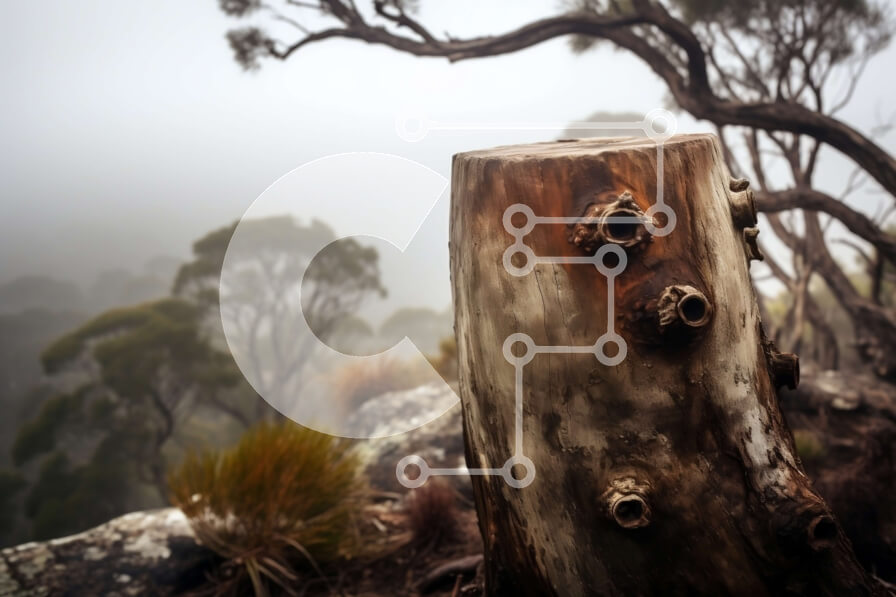 Intra Συλλεκτικό Ξύλινο Παζλ Plywood 4mm - Μυστηριώδες κούτσουρο δέντρου σε ομιχλώδες περιβάλλον Σε Ξύλινο Κουτί - Διαστάσεις: 10x10 cm – 25 κομμάτια