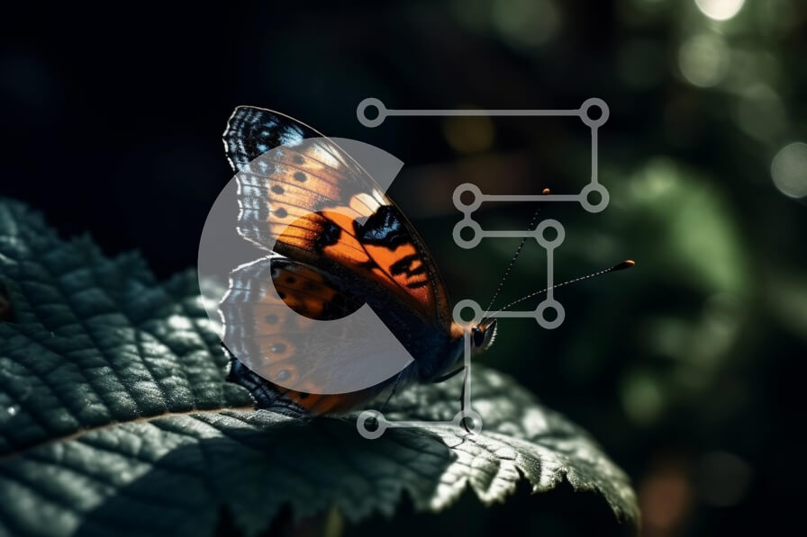 Intra Συλλεκτικό Ξύλινο Παζλ Plywood 4mm - Μυστηριώδης και απόκοσμη εικόνα μιας πεταλούδας σκαρφαλωμένης σε ένα φύλλο σε ένα σκοτεινό δάσος Σε Ξύλινο Κουτί - Διαστάσεις: 10x10 cm – 25 κομμάτια