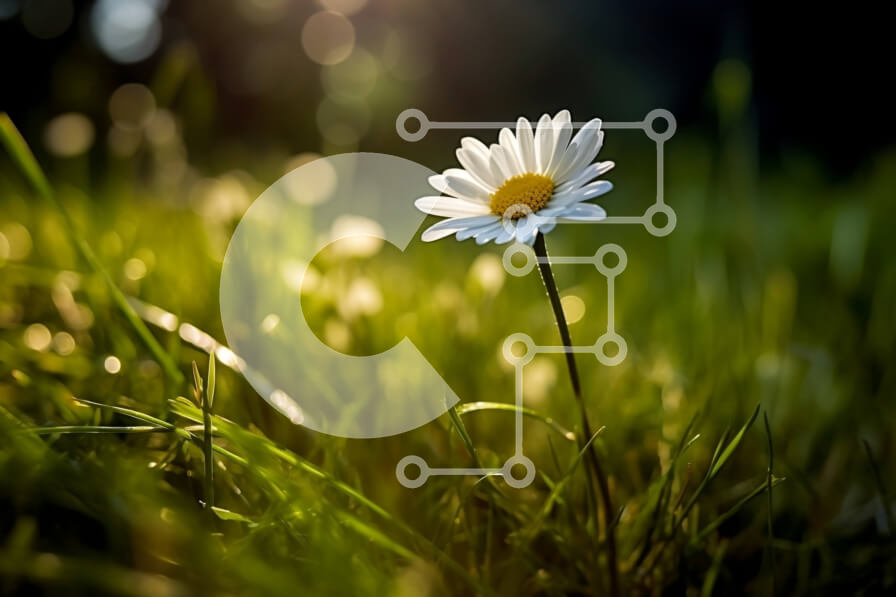 Intra Συλλεκτικό Ξύλινο Παζλ Plywood 4mm - Όμορφη εικόνα μιας λευκής μαργαρίτας σε ένα πράσινο χωράφι μια ηλιόλουστη μέρα Σε Ξύλινο Κουτί - Διαστάσεις: 10x10 cm – 25 κομμάτια