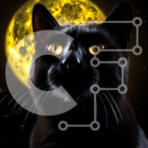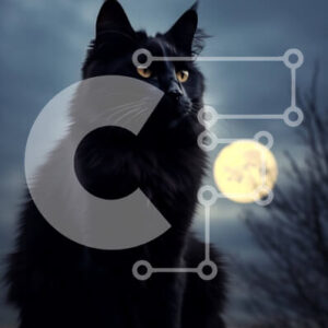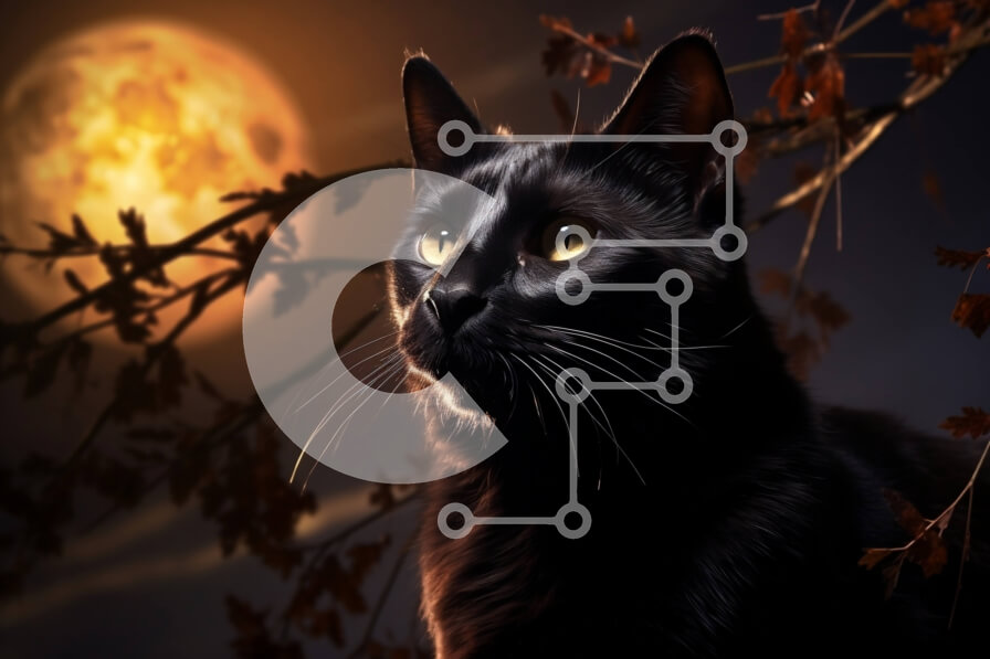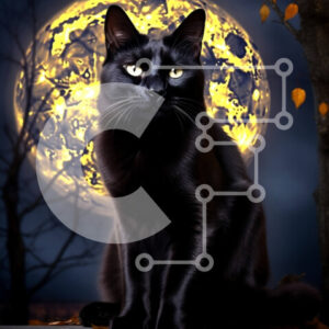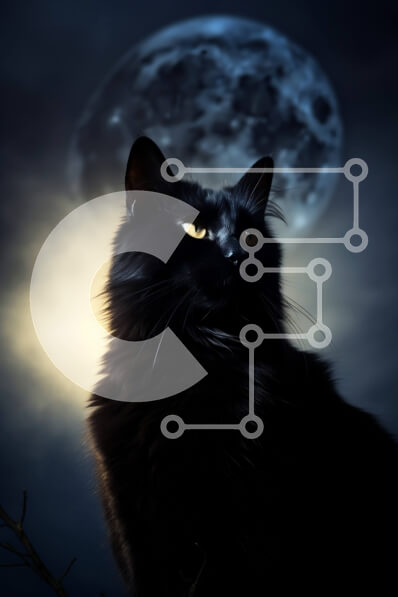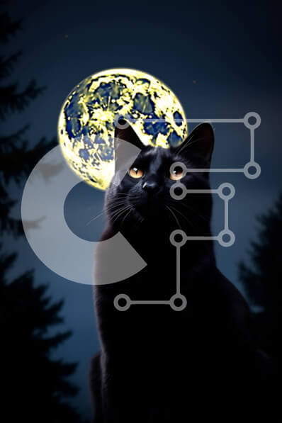 Intra Συλλεκτικό Ξύλινο Παζλ Plywood 4mm - Μυστηριώδης εικόνα μιας μαύρης γάτας που σκιαγραφείται ενάντια σε μια πανσέληνο Σε Ξύλινο Κουτί - Διαστάσεις: 10x10 cm – 25 κομμάτια