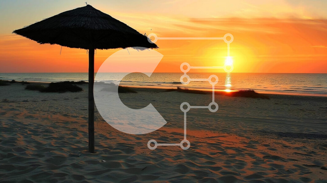 Intra Συλλεκτικό Ξύλινο Παζλ Plywood 4mm - Μοναχική ομπρέλα στην αμμώδη παραλία στο ηλιοβασίλεμα Σε Ξύλινο Κουτί - Διαστάσεις: 10x10 cm – 25 κομμάτια