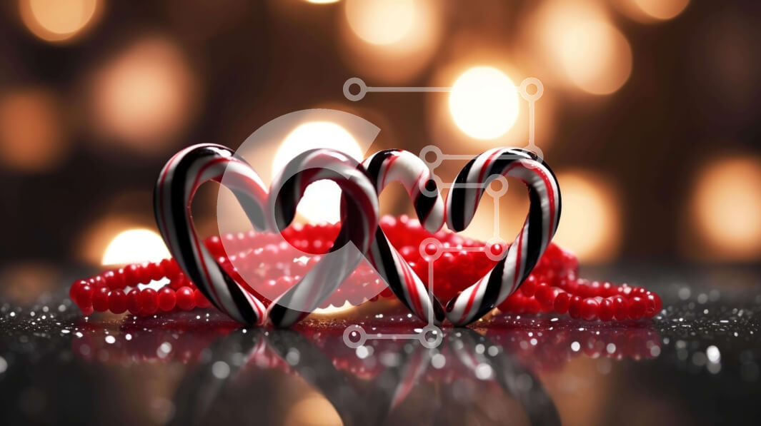Intra Συλλεκτικό Ξύλινο Παζλ Plywood 4mm - Μπαστούνια καραμελών σε σχήμα καρδιάς σε σκούρο φόντο Σε Ξύλινο Κουτί - Διαστάσεις: 10x10 cm – 25 κομμάτια