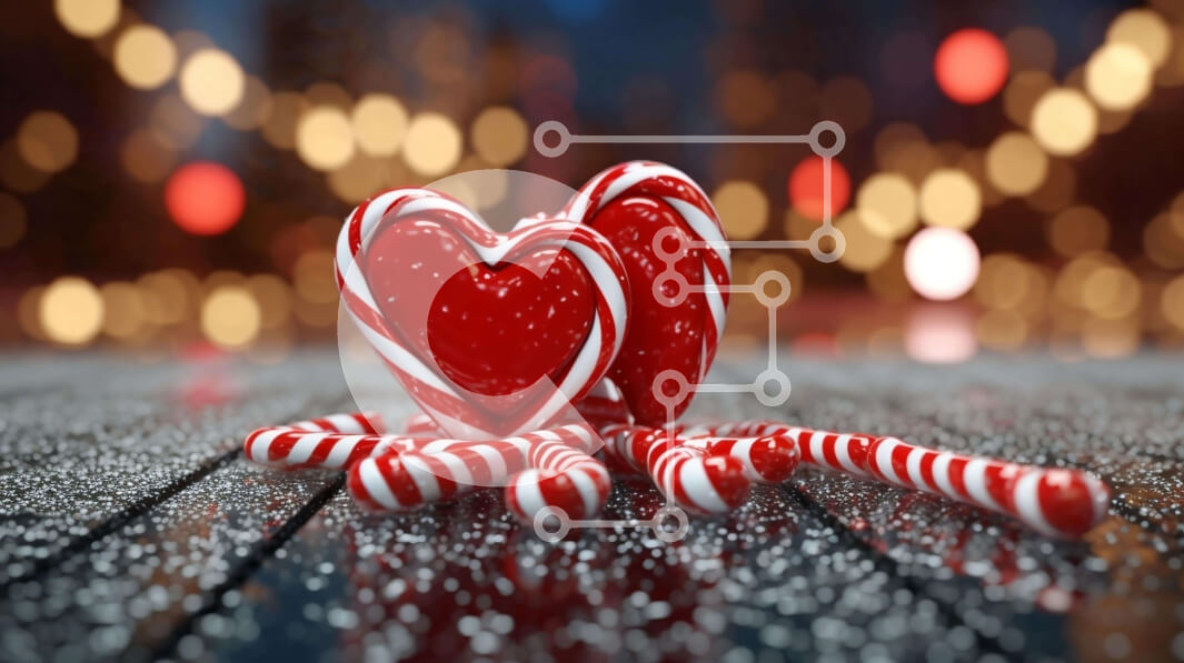 Intra Συλλεκτικό Ξύλινο Παζλ Plywood 4mm - Μπαστούνια καραμελών σε σχήμα καρδιάς σε αφηρημένο φόντο με πολύχρωμα φώτα Σε Ξύλινο Κουτί - Διαστάσεις Puzzle: 10x10 cm – 25 κομμάτια
