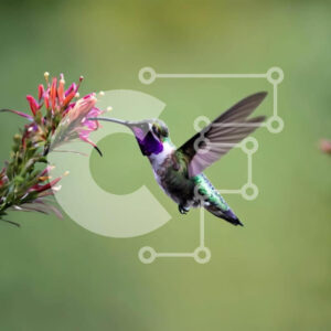 Intra Συλλεκτικό Ξύλινο Παζλ Plywood 4mm - Μωβ κολίβριο που τρέφεται με νέκταρ λουλουδιών Σε Ξύλινο Κουτί - Διαστάσεις: 10x10 cm – 25 κομμάτια