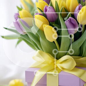 Intra Συλλεκτικό Ξύλινο Παζλ Plywood 4mm - Μωβ Κουτί δώρου με κίτρινες και μωβ τουλίπες Σε Ξύλινο Κουτί - Διαστάσεις: 10x10 cm – 25 κομμάτια