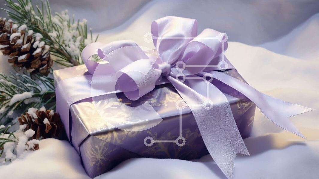 Intra Συλλεκτικό Ξύλινο Παζλ Plywood 4mm - Μωβ κουτί δώρου με φιόγκο σε χιονισμένο έδαφος Σε Ξύλινο Κουτί - Διαστάσεις: 10x10 cm – 25 κομμάτια
