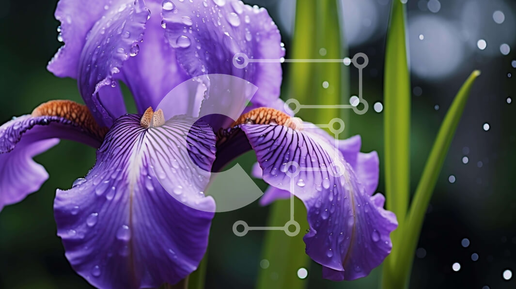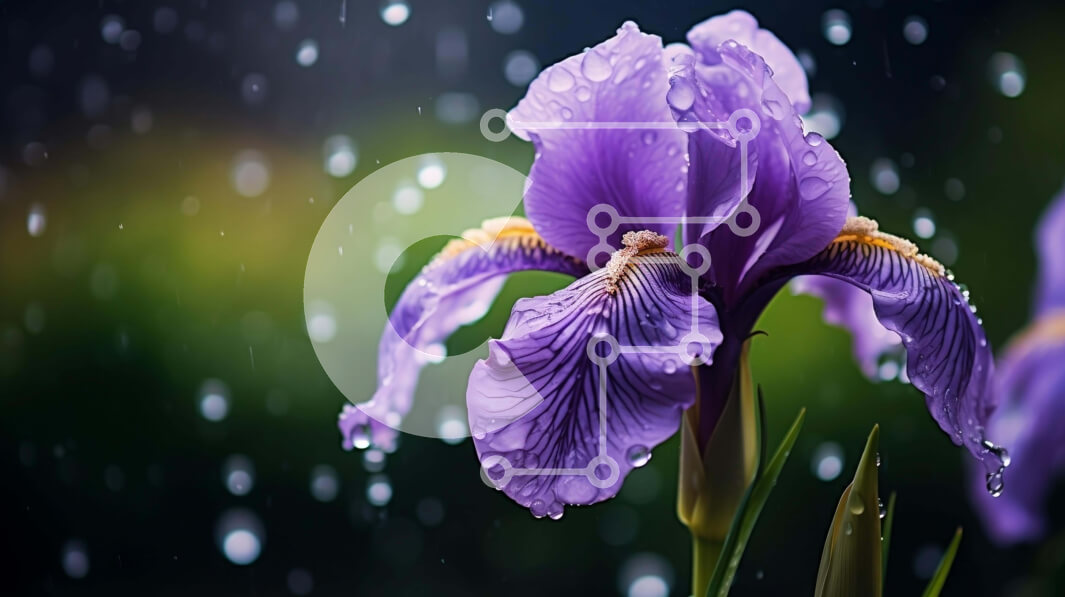 Intra Συλλεκτικό Ξύλινο Παζλ Plywood 4mm - Μωβ λουλούδι ίριδας στη βροχή με σταγονίδια νερού Σε Ξύλινο Κουτί - Διαστάσεις: 10x10 cm – 25 κομμάτια