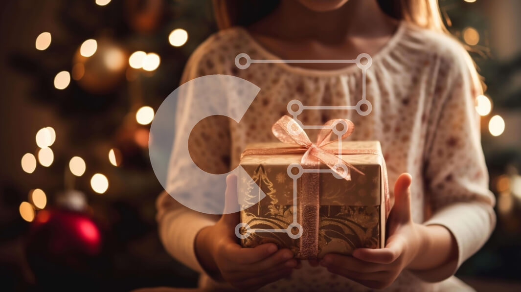 Intra Συλλεκτικό Ξύλινο Παζλ Plywood 4mm - Νεαρό κορίτσι με ανοιχτό κιβώτιο δώρων μπροστά από το χριστουγεννιάτικο δέντρο Σε Ξύλινο Κουτί - Διαστάσεις: 10x10 cm – 25 κομμάτια