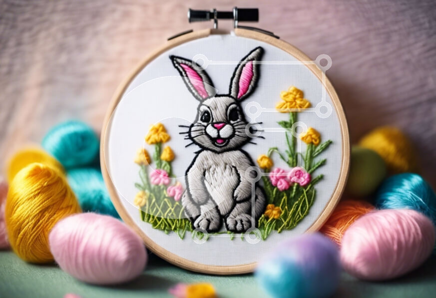 Intra Συλλεκτικό Ξύλινο Παζλ Plywood 4mm - Πασχαλινό τσέρκι κεντήματος με λαγουδάκι και πολύχρωμα αυγά Σε Ξύλινο Κουτί - Διαστάσεις Puzzle: 10x10 cm – 25 κομμάτια