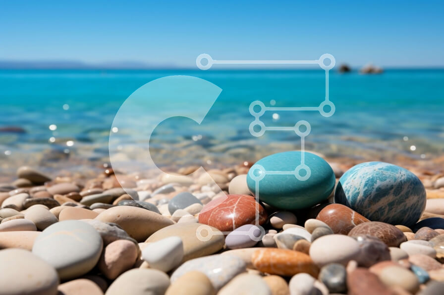 Intra Συλλεκτικό Ξύλινο Παζλ Plywood 4mm - Όμορφη κινηματογράφηση σε πρώτο πλάνο με βότσαλα και βράχους σε μια παραλία με καταγάλανα νερά Σε Ξύλινο Κουτί - Διαστάσεις: 10x10 cm – 25 κομμάτια