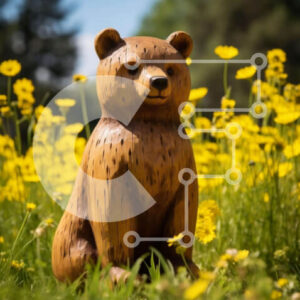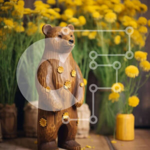 Intra Συλλεκτικό Ξύλινο Παζλ Plywood 4mm - Ξύλινο άγαλμα αρκούδας σε ανοιχτό χωράφι με κίτρινα λουλούδια Σε Ξύλινο Κουτί - Διαστάσεις: 10x10 cm – 25 κομμάτια