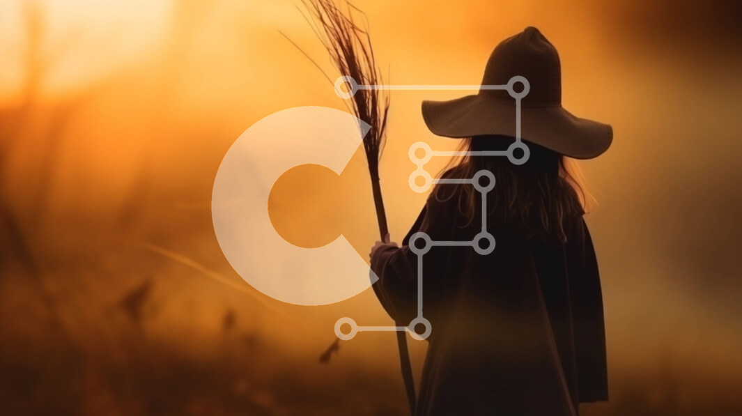 Intra Συλλεκτικό Ξύλινο Παζλ Plywood 4mm - Νεαρό κορίτσι με κοστούμι μάγισσας με φόντο ηλιοβασίλεμα Σε Ξύλινο Κουτί - Διαστάσεις Puzzle: 10x10 cm – 25 κομμάτια