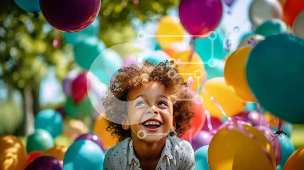 Intra Συλλεκτικό Ξύλινο Παζλ Plywood 4mm - Νεαρό κορίτσι με σγουρά μαλλιά και πολύχρωμα μπαλόνια στον ουρανό Σε Ξύλινο Κουτί - Διαστάσεις Puzzle: 10x10 cm – 25 κομμάτια
