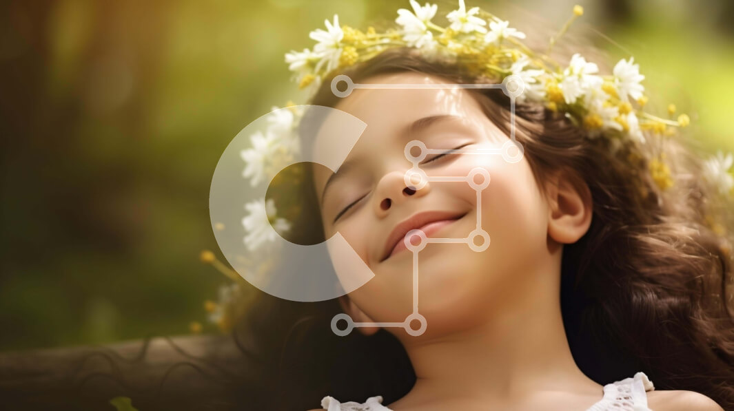 Intra Συλλεκτικό Ξύλινο Παζλ Plywood 4mm - Νεαρό κορίτσι με λευκό χρώμα και μπλε μάτια που περιβάλλεται από λουλούδια Σε Ξύλινο Κουτί - Διαστάσεις Puzzle: 10x10 cm – 25 κομμάτια