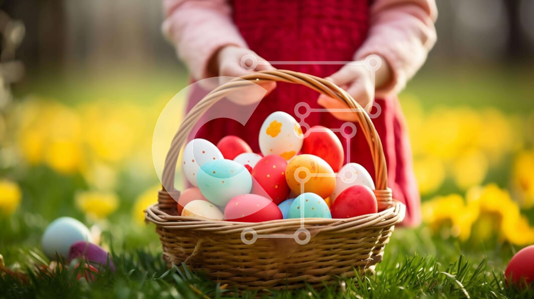 Intra Συλλεκτικό Ξύλινο Παζλ Plywood 4mm - Νεαρό κορίτσι με Πασχαλινό καλάθι γεμάτο με πολύχρωμα αυγά στο γρασίδι Σε Ξύλινο Κουτί - Διαστάσεις: 10x10 cm – 25 κομμάτια