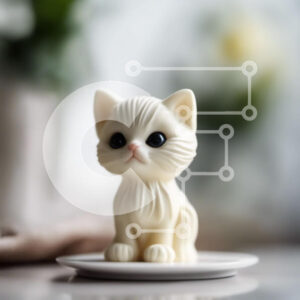 Intra Συλλεκτικό Ξύλινο Παζλ Plywood 4mm - Μικρό ειδώλιο λευκής γάτας σε άδειο πιάτο με φυτά και λουλούδια Σε Ξύλινο Κουτί - Διαστάσεις Puzzle: 10x10 cm – 25 κομμάτια