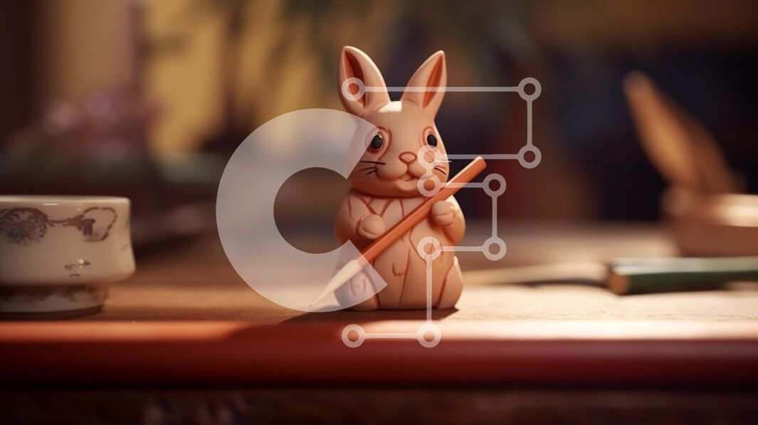 Intra Συλλεκτικό Ξύλινο Παζλ Plywood 4mm - Μικρό ειδώλιο λαγουδάκι με μολύβι σε ξύλινο τραπέζι Σε Ξύλινο Κουτί - Διαστάσεις: 10x10 cm – 25 κομμάτια
