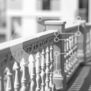 Intra Συλλεκτικό Ξύλινο Παζλ Plywood 4mm - Όμορφη εικόνα του μοντέρνου κιγκλιδώματος μπαλκονιού στην πόλη Σε Ξύλινο Κουτί - Διαστάσεις Puzzle: 10x10 cm – 25 κομμάτια