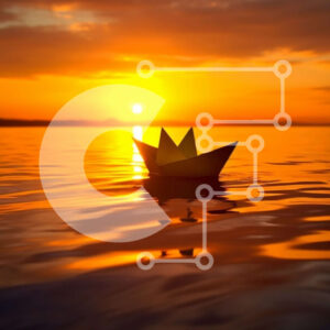 Intra Συλλεκτικό Ξύλινο Παζλ Plywood 4mm - Όμορφη εικόνα του μικρού χάρτινου σκάφους στο νερό στο ηλιοβασίλεμα Σε Ξύλινο Κουτί - Διαστάσεις: 10x10 cm – 25 κομμάτια