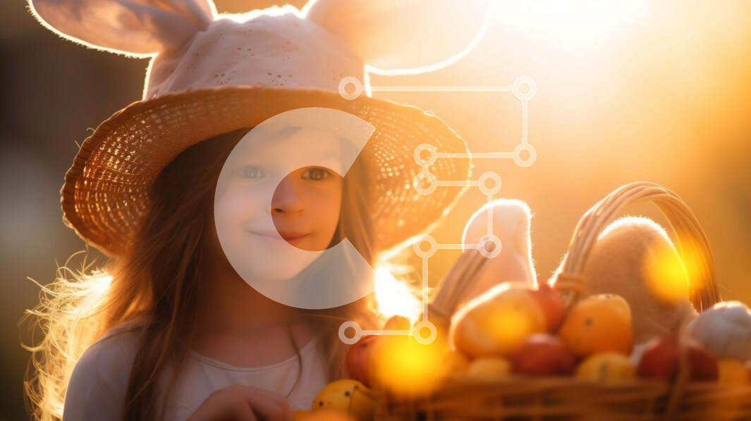 Intra Συλλεκτικό Ξύλινο Παζλ Plywood 4mm - Νεαρό κορίτσι με πασχαλινό καπέλο λαγουδάκι και καλάθι με φρούτα Σε Ξύλινο Κουτί - Διαστάσεις: 10x10 cm – 25 κομμάτια
