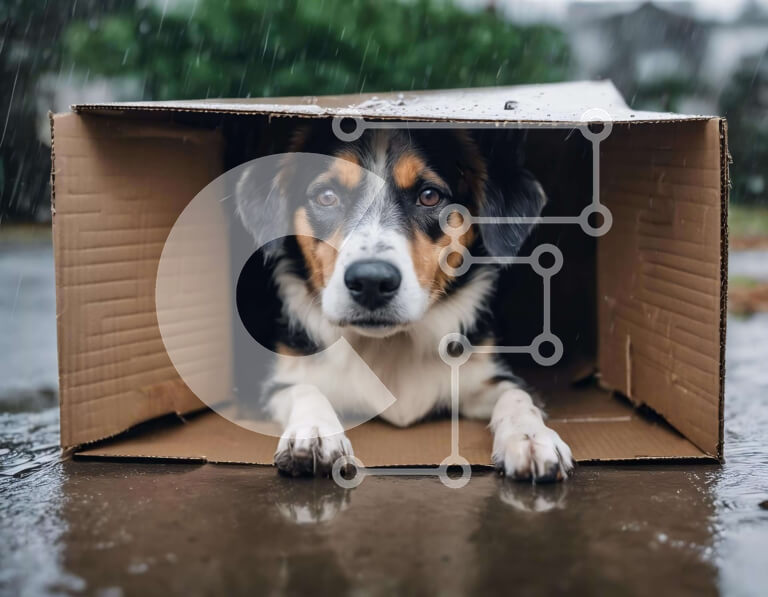 Intra Συλλεκτικό Ξύλινο Παζλ Plywood 4mm - Περίεργος σκύλος που κάθεται στο χάρτινο κουτί στη βροχή Σε Ξύλινο Κουτί - Διαστάσεις: 10x10 cm – 25 κομμάτια