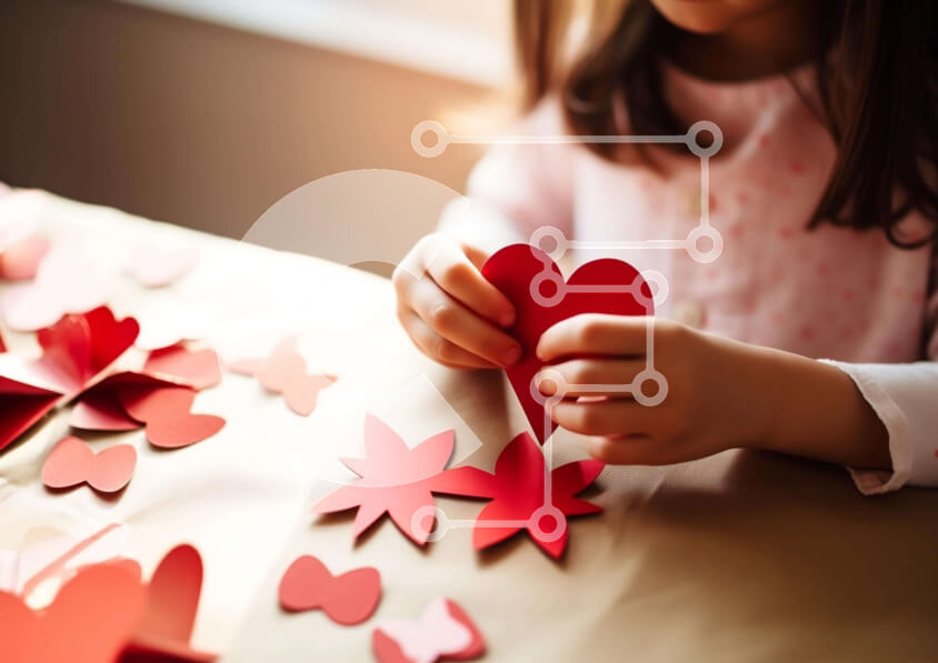 Intra Συλλεκτικό Ξύλινο Παζλ Plywood 4mm - Νεαρό κορίτσι που κατασκευάζει χάρτινα κοψίματα σε σχήμα καρδιάς Σε Ξύλινο Κουτί - Διαστάσεις Puzzle: 10x10 cm – 25 κομμάτια