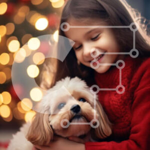 Intra Συλλεκτικό Ξύλινο Παζλ Plywood 4mm - Νεαρό κορίτσι που αγκαλιάζει το σκυλί της μπροστά από το χριστουγεννιάτικο δέντρο Σε Ξύλινο Κουτί - Διαστάσεις: 10x10 cm – 25 κομμάτια