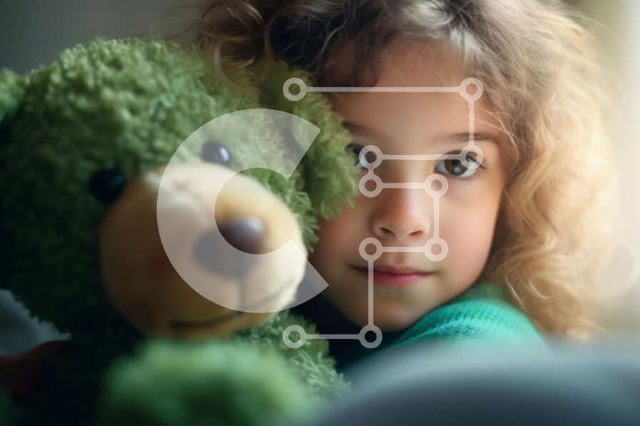 Intra Συλλεκτικό Ξύλινο Παζλ Plywood 4mm - Νεαρό κορίτσι που αγκαλιάζει πράσινο γεμιστό ζώο με σγουρά μαλλιά Σε Ξύλινο Κουτί - Διαστάσεις Puzzle: 10x10 cm – 25 κομμάτια